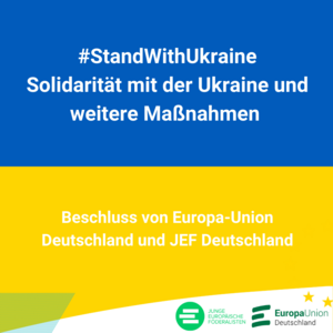 Europa-Union Deutschland und JEF Deutschland verurteilen den Angriffskrieg des russischen Präsidenten, Wladimir Putin, auf das Schärfste. Wir stehen solidarisch an der Seite der Ukraine und ihrer Bevölkerung, über die dieser Krieg unsägliches Leid bringt, sowie auch all derjenigen, die sich in Russland und Belarus für Frieden, Demokratie und Freiheit einsetzen. » weiterlesen